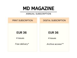 Surprise your loved one with one of the best design magazines in the world. You can count on us to serve it in the best way. MD is the perfect gift for a professional in the industry, an amateur or just a person with aesthetic taste.